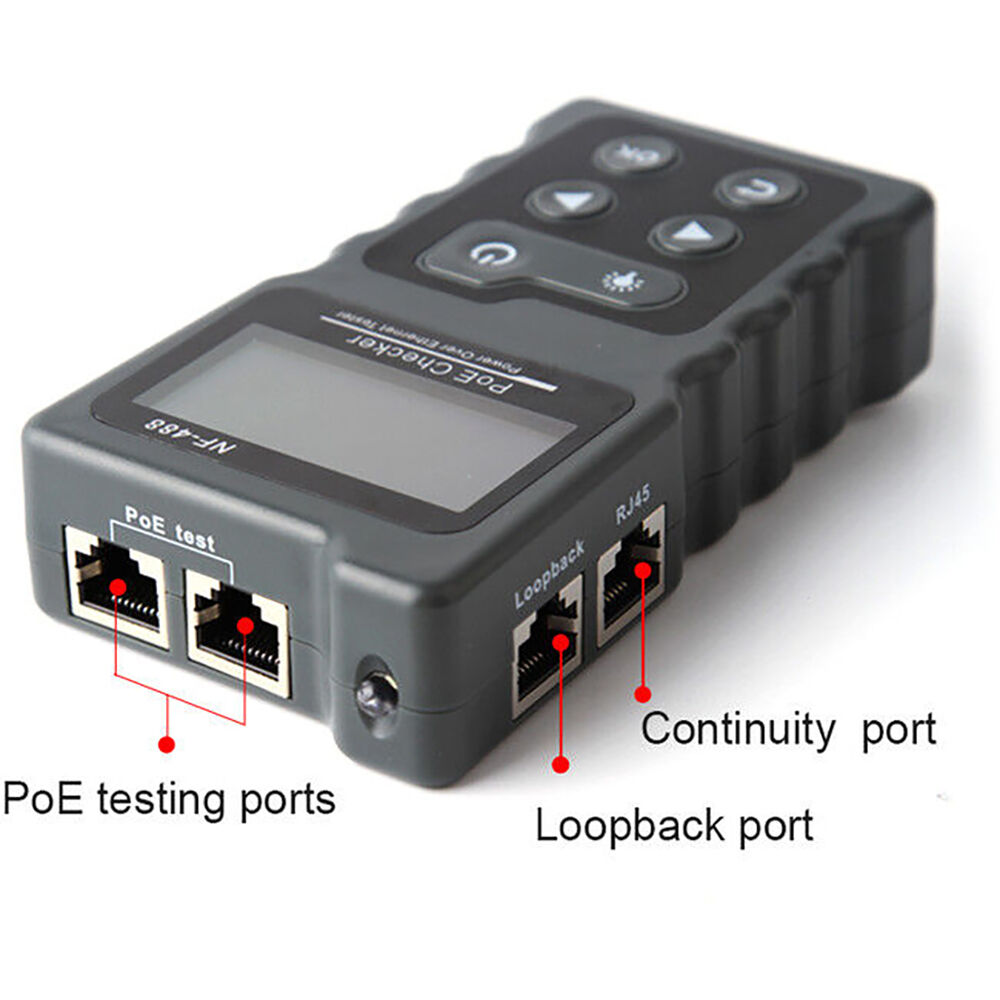 Features: - Test the information of the standard PoE device, such as af\at standard, power supply voltage, power supply polarity, and crossover mode.