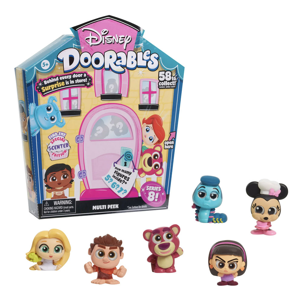 Behind every door a surprise is in store with Disney Doorables Mini Peek Series 8 Collectible Figures. Unbox 5, 6, or 7 Disney figurines. Then, open the doors! Series 8 includes 58 characters from the stories of Disney’s Hercules, Alice in Wonderland, Wreck-It Ralph, Glittery Disney Fairies, Toddler Disney Princesses, Disney Pixar’s Turning Red, and 6 pearlized translucent figures from Monsters, Inc. There are even 6 special edition scented figures, and two limited edition figures with unique collector coins. Each character stands approximately 1.5 inches tall and features stylized detailing with sparkly glitter eyes. Recreate classic Disney tales or invent new adventures. The stories are endlessly fun – and get better as additional kids toy figures & playsets are collected, displayed, and shared. A fun toy for kids ages 5 years and up.