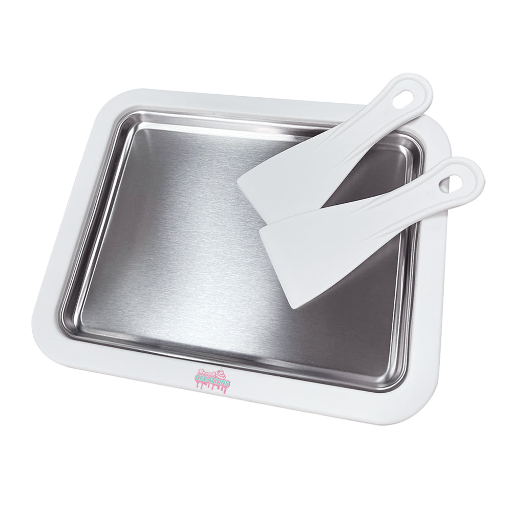 Great for consumers of all ages, this fun sized Ice Cream Maker can create homemade desserts in minutes. Ideal for making delicious rolled ice cream, fruit sorbet, gelato, frozen yoghurt, and smash & mix combos; this BPA-free ice cream maker features an odourless, tasteless, food-grade stainless steel tray, 2 mixing paddles, and a recipe and instruction booklet. There's no limit to your creativity.