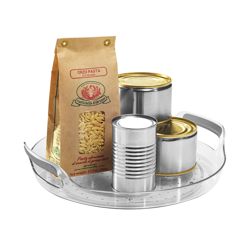 The Shallow Portable Turntable by Madesmart ® is the perfect solution for storing and organising condiments in the fridge, spices in the pantry, or fruit on the benchtop.The turntable's spinning action allows for easy and quick searching, helped by the crystal clear, high-quality plastic.