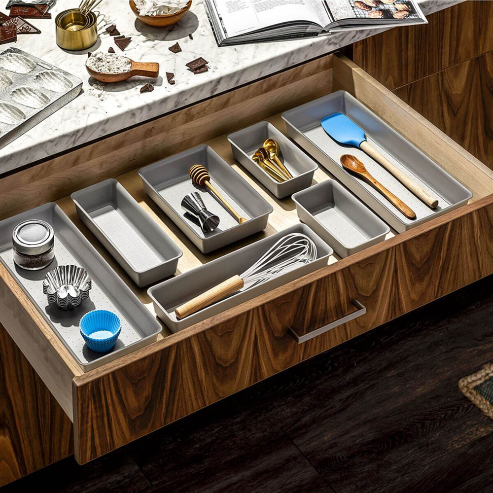 The Mini Bin by Madesmart ® is a simple one-compartment bin that is essential for creating your own personalised drawer or cupboard organisation system.The multipurpose storage bin can be used throughout the entire home to store your favourite items, with a soft grip overmould lining and non-slip rubber feet to keep items in place.