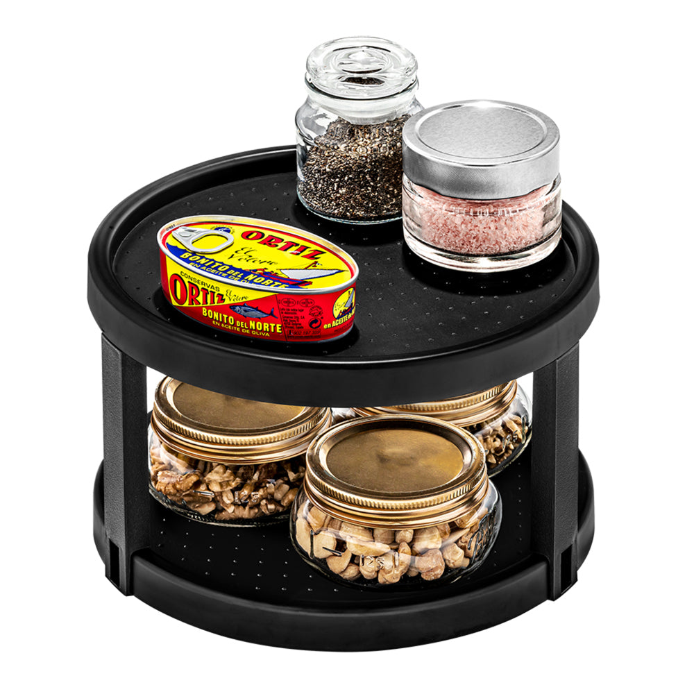 - Spins for easy access to items.