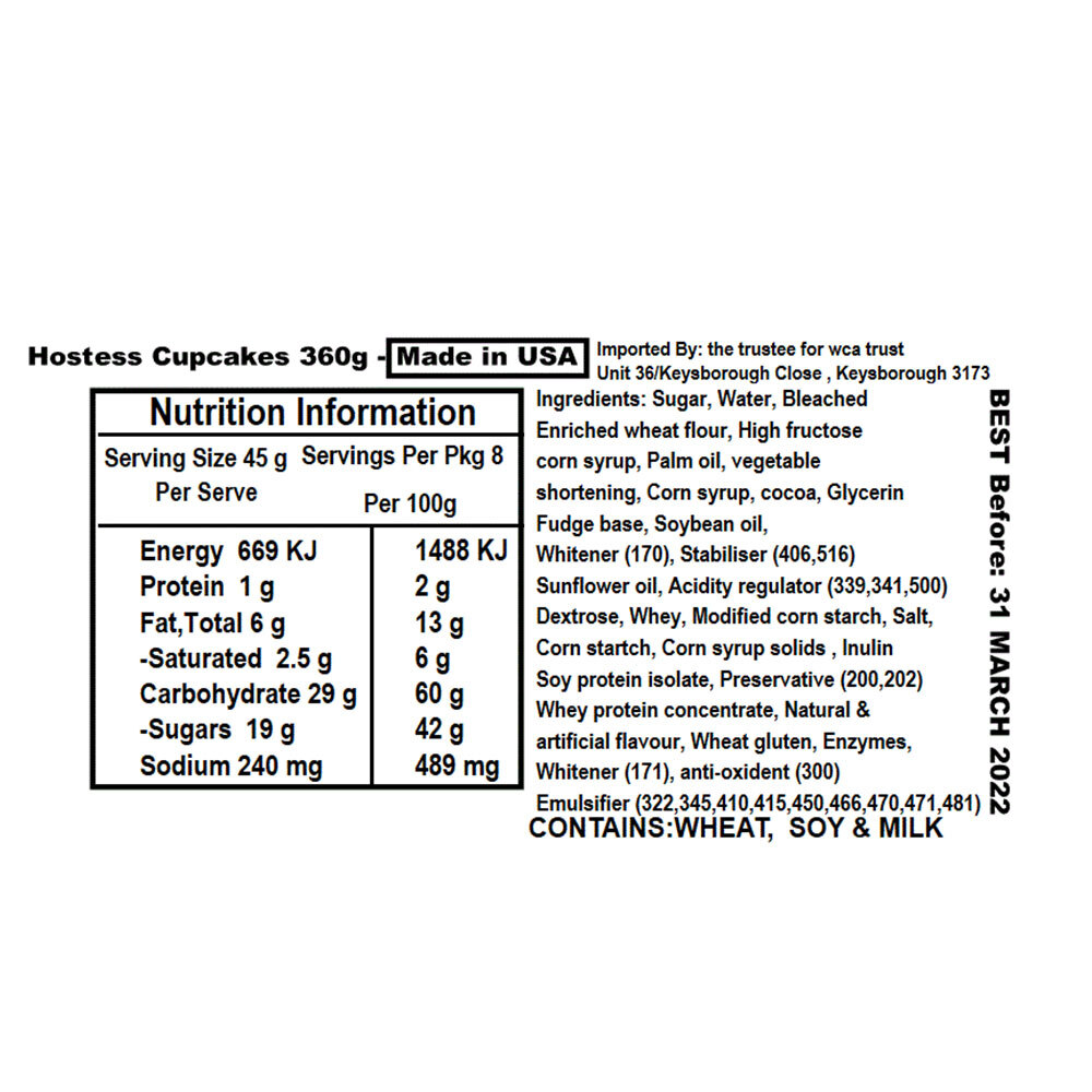 8x Hostess Frosted Chocolate Cupcakes 360g