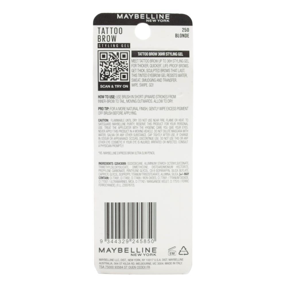 Maybelline 6ml Tattoo Brow 36hr Styling Gel Blonde #250 Carded