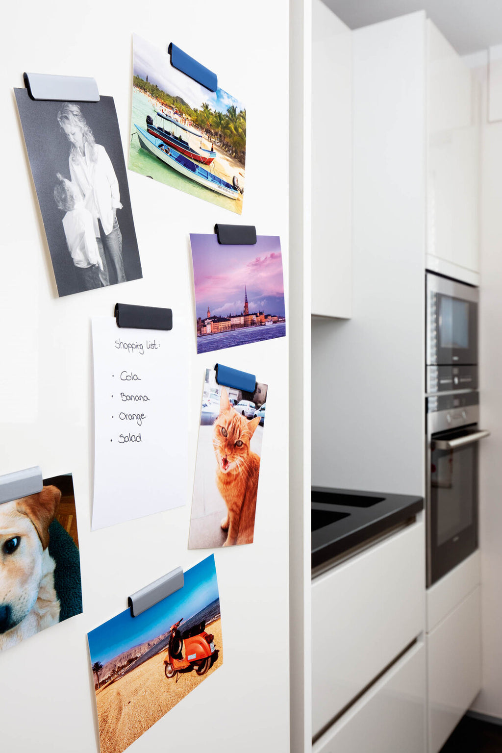 Attach notes quickly and easily with DURAFIX®. Attach self-adhesive magnetic clips, open them, put a note inside and change as required.