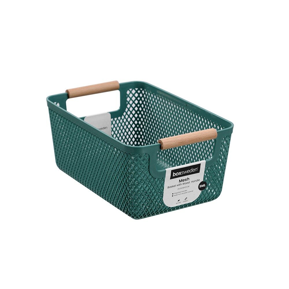 Organise your home with our Boxsweden Mesh Plastic Basket with Wood