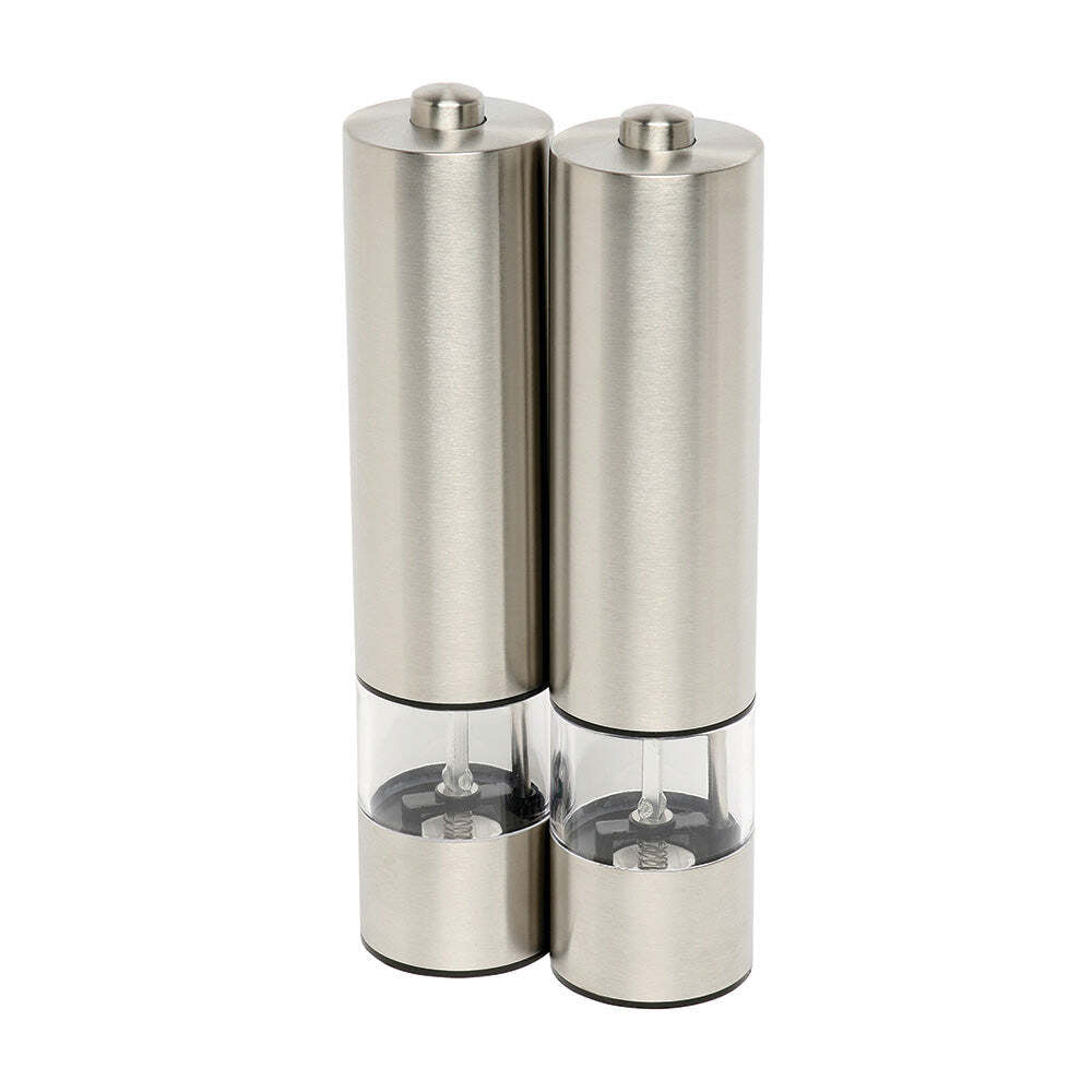 Ideal for rock salt and whole peppercorns, our Salt & Pepper Electric Stainless Steel Mill Set will look stylish on your tabletop.