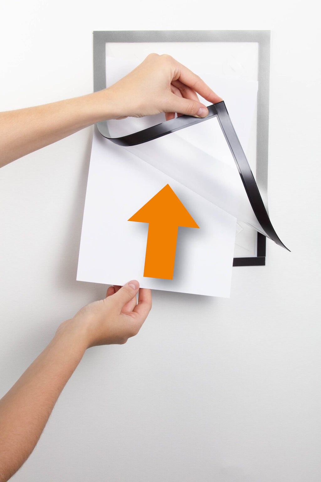 - Quick insertion and exchange of documents via a fold-back magnetic frame