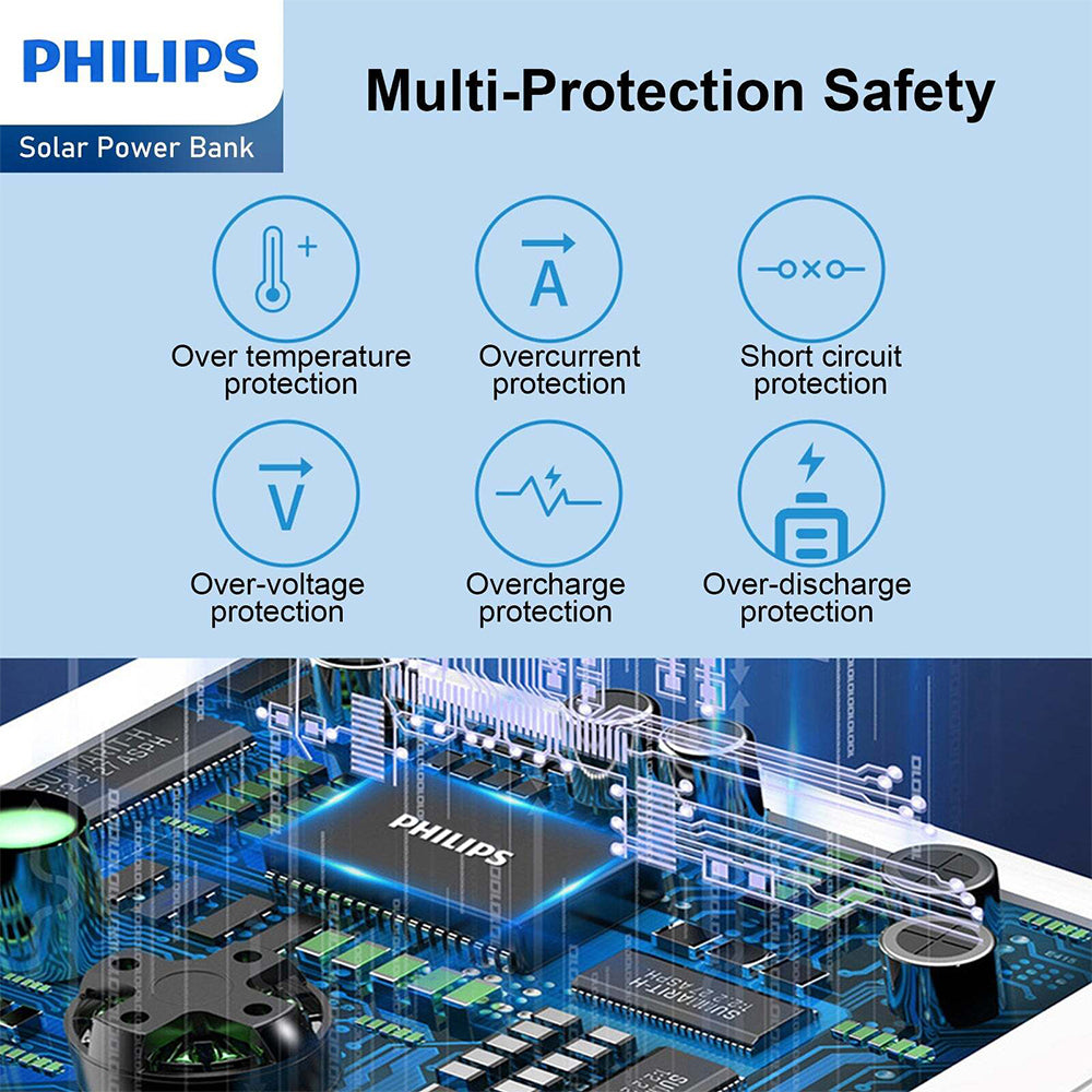 Philips 10000mAh Solar Power Bank Portable Charger Battery - Black