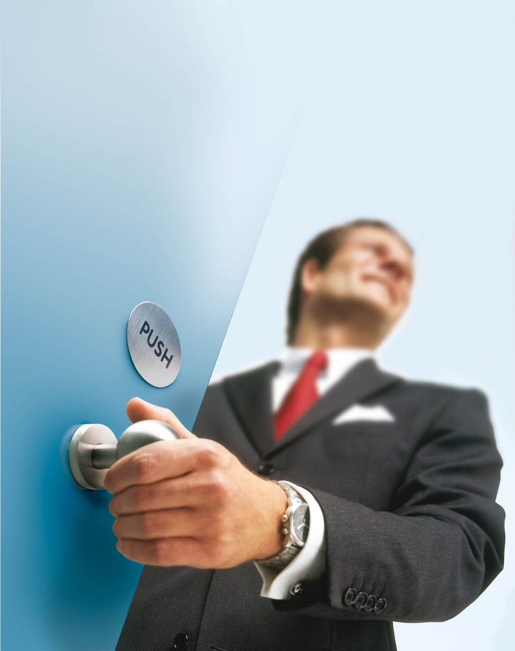 Durable Stainless Steel Pictogram Push w/ Adhesive Pad - Silver