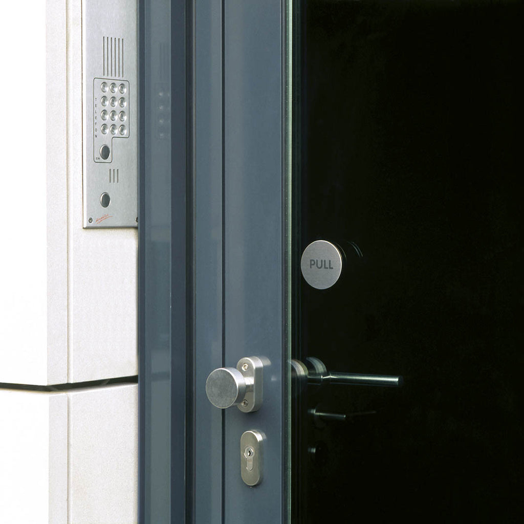 Made of high-quality brushed stainless steel. Scratch-proof, hardwearing print. Versatile and easy to understand. With adhesive pad for fastening to a great variety of surfaces.