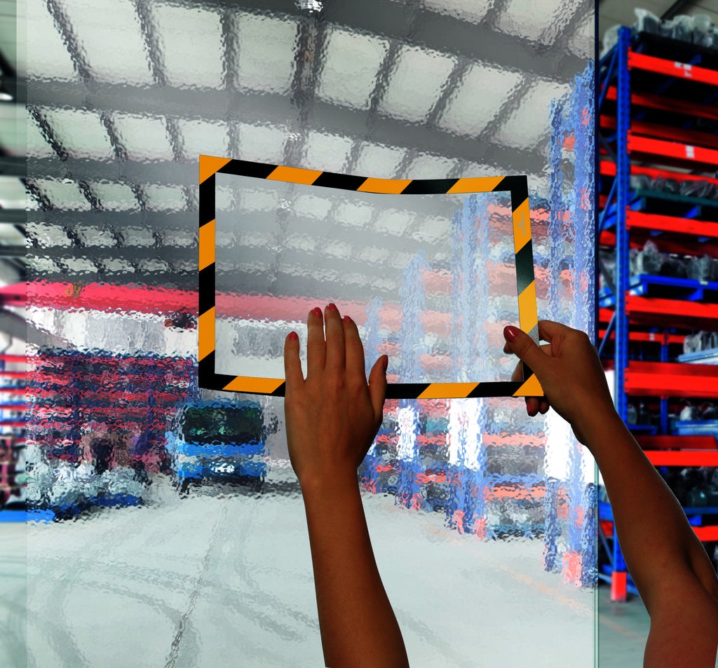 DURAFRAME¬ SECURITY - The professional self-adhesive, ISO-compliant twin coloured infoframe. Ideal for displaying safety and warning signs such as wet floor, no smoking etc.