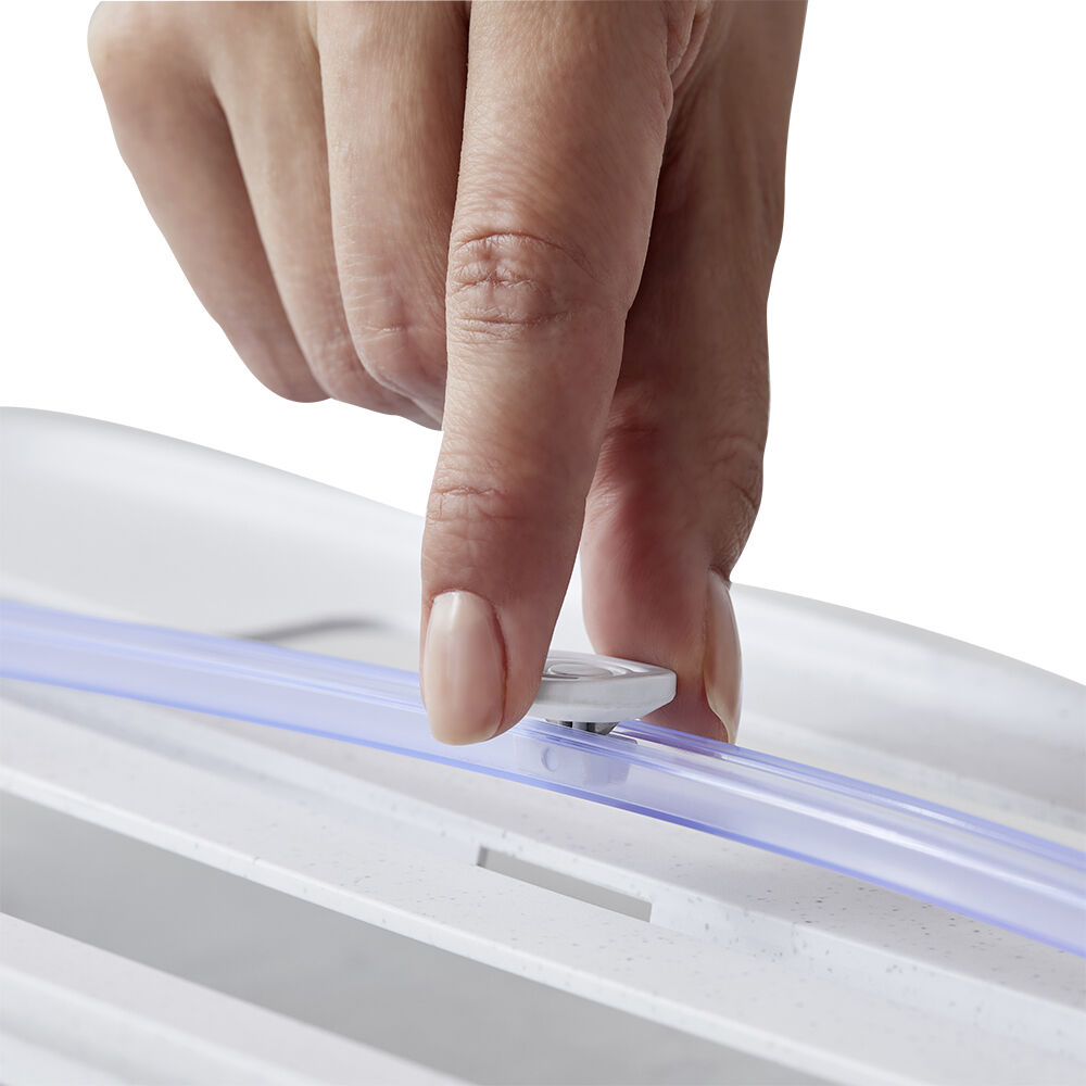 The StoraRoll Food Wrap Dispenser from YouCopia puts an organised spin on your kitchen routine. Aluminium foil, plastic wrap, parchment and wax paper pull through slots to stretch across the cutting track. A safety blade glides back and forth for a clean cut every time. The removable lid makes reloading quick and easy, while non-slip feet hold the unit in place. Two separate compartments allow you to store, dispense and cut up to two different rolls from the one holder.