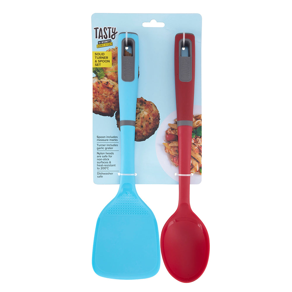 2pc Tasty Non-Stick Solid Turner & Spoon Cooking Utensil Set Blue/Red