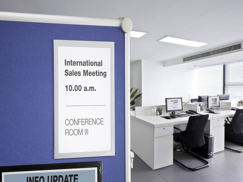 DURAFRAME¬ GRIP - The self-gripping infoframe for textile surfaces such as fabric panels, partition walls and acoustic panels.
