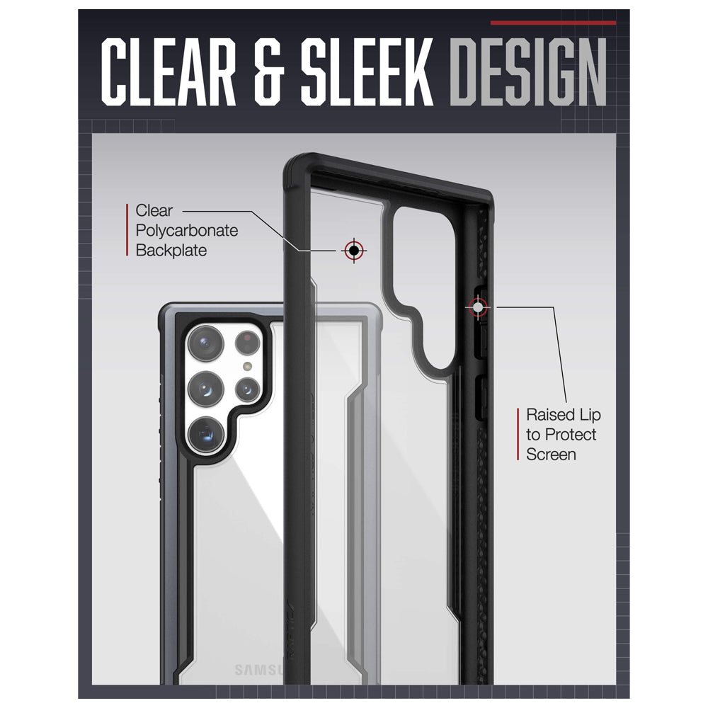 The Raptic Shield case for the Samsung Galaxy S23 made of hard polycarbonate, soft rubber, and anodized aluminium, and it provides military-grade protection. The case has a sleek and edgy design with a clear polycarbonate back to show off the phone.