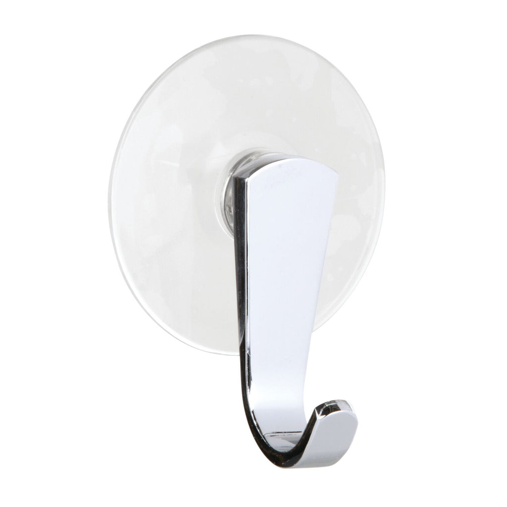Organize your bathroom in style with the iDesign Gia Suction Storage Hooks. This set of two organizer hooks creates storage space for a variety of bathroom necessities such as washcloths, towels, loofahs, and more on the shower or bathtub wall. Each hook features a suction cup to provide a strong hold on any clean, smooth surface including tile, glass, fiberglass, and metal. Simply press the suction cups firmly to the shower wall to install - no drilling or hardware required! The versatile design can also be used in the kitchen, laundry room, or anywhere that you need additional organization. The durable stainless steel construction with polished chrome finish stands up to every day use and is easy to clean with mild soap and water. , these metal hooks are ideal for adding storage in compact spaces around the home.