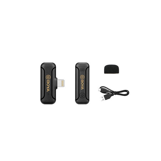 The BY-WM3T2 series is a mini 2.4GHz wireless microphone system that provides high quality sound for live streaming, vlogging, course recording and other audio capturing applications. With an MFi Certified Lightning output, the BY-WM3T2-D1 is designed for Apple iOS devices, and it comes with 1 transmitter and 1 receiver.