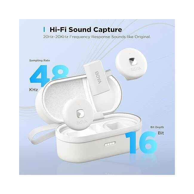 The BOYA Omic is an ultra-compact and portable 2.4GHz wireless microphone system, compatible with computers,Android/ iOs mobile devices and more. It features automatic pairing and selectable noise cancellation, delivering broadcast-quality sound with remarkable ease of use.The Omic is ideal for content creation, live streaming, vlogging, mobile journalism and much more. The USB-C receiver and iOS receiver are device powered and have USB-C charging ports, which support charging and powering of devices while in use. The included charging case allows you to charge the transmitter(s)anywhere, making the Omic kit easy to carry on.