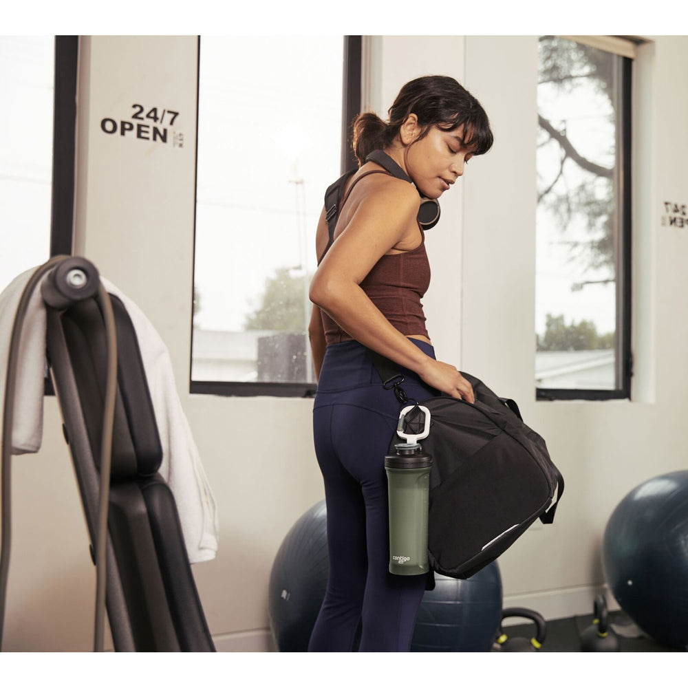 Grab the Contigo Fit Shake & Go 2.0 to power up before your workout or recharge while you wind down. Add your favorite protein, energy, or recovery drink to the shaker bottle and attach the leakproof lid. The improved agitator ball makes even mixing easy. This protein shaker’s carabiner handle can rotate so it stays out of the way and doubles as a clip that attaches the bottle to your gym bag.