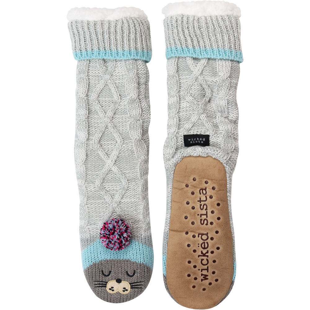 Wicked Sista Animal Slipper Socks Seal One Size - Grey