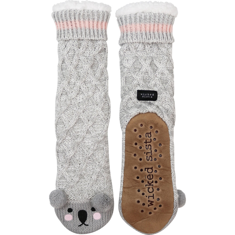 Wicked Sista Animal Slipper Socks Koala One Size - Grey
