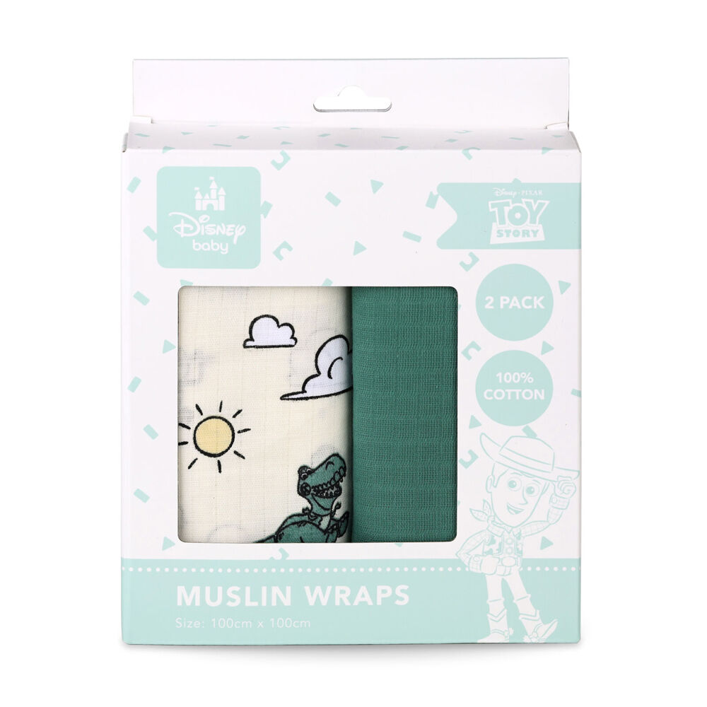 Wraps: The 2-Pack Muslin Wraps are perfect for swaddling, nursing, or as a lightweight blanket. This set features an adorable allover Toy Story character print wrap and a calming solid green opton, ideal for cozy moments or as a versatile accessory. Made from soft, breathable muslin, these wraps are a durable and stylish must-have for any parent looking to add a touch of fun and functionality to baby’s essentials!