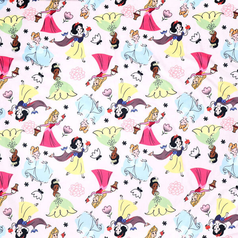 PrincessPram Blanket: Make every adventure feel like a fairy tale come true with our Disney Princess Pram Blanket! Featuring a delightful print of beloved characters—Snow White, Aurora, Tiana, and Cinderella—set against a soft pink background adorned with whimsical flowers, this blanket is perfect for magical outings. Made from super soft printed velour fabric with a light pink fleece back that ensures baby stays cozy and warm. Whether in the pram or during cuddly nap times, this lightweight and easily portable blanket is a must-have for every little princess.