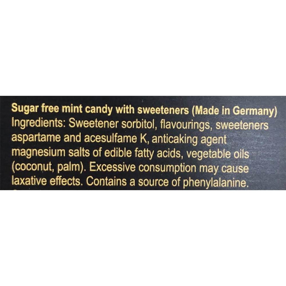 A metal mint box filled with quality German made mints. The box fits conveniently into your bag or glove box. The mint box is made from steel sheet metal with an embossed design on the lid.