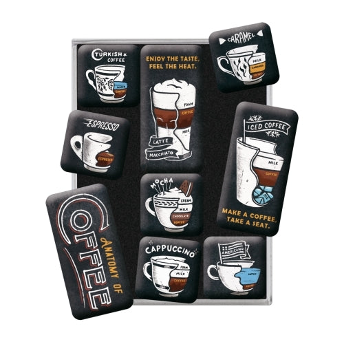 1 x 9pc Nostalgic Art Magnet Set Anatomy of Coffee