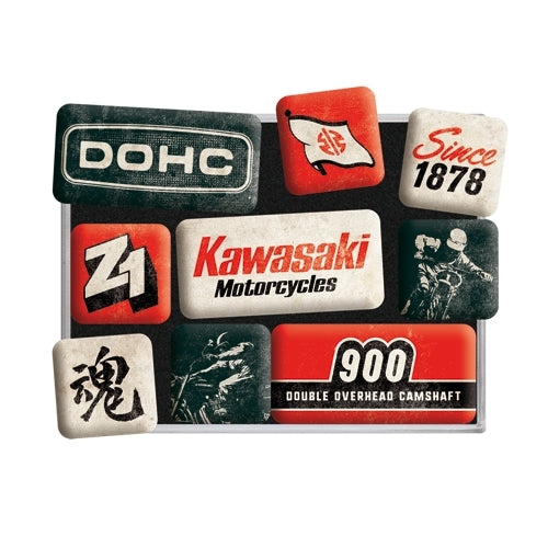 9pc Nostalgic-Art Magnet Set Kawasaki Motorcycles 1878