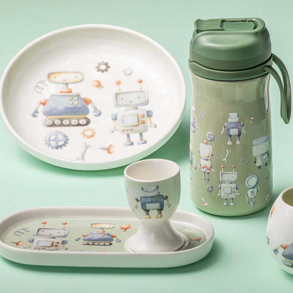Ashdene Robots Soldier Kids New Bone China Egg Cup & Plate Set