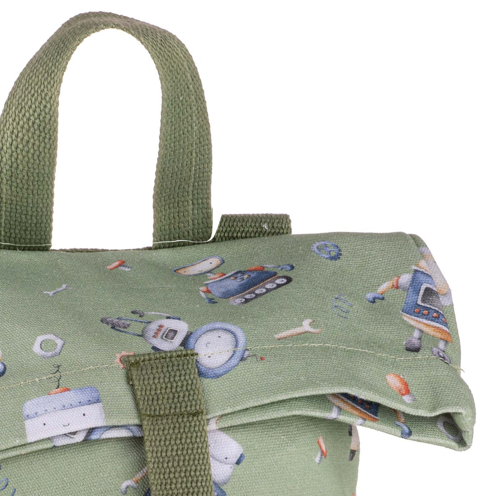 Ashdene Robots 27x31cm Backpack Kids Cotton Canvas Bag - Green
