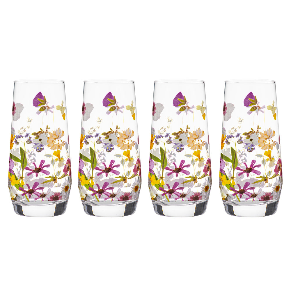 4pc Ashdene Pressed Flowers 540ml Glass Highball Tumbler Set