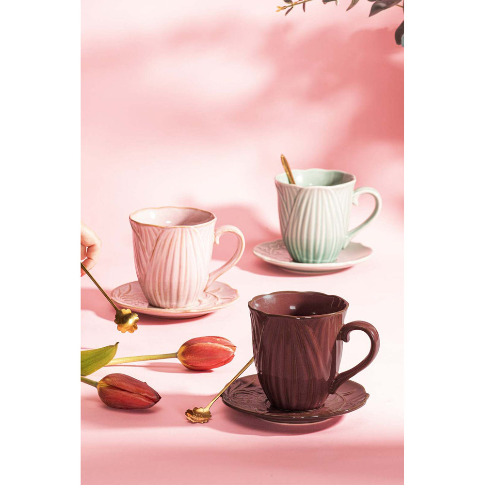Ashdene Petals Stoneware Mug Saucer & Spoon Gift Set - Mint Green