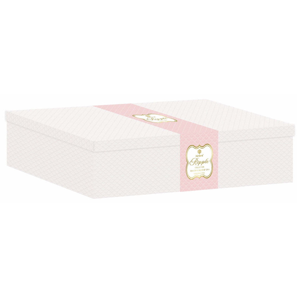 4x Ashdene New Bone China Blush Ripple Cup & Saucer Set - Pink