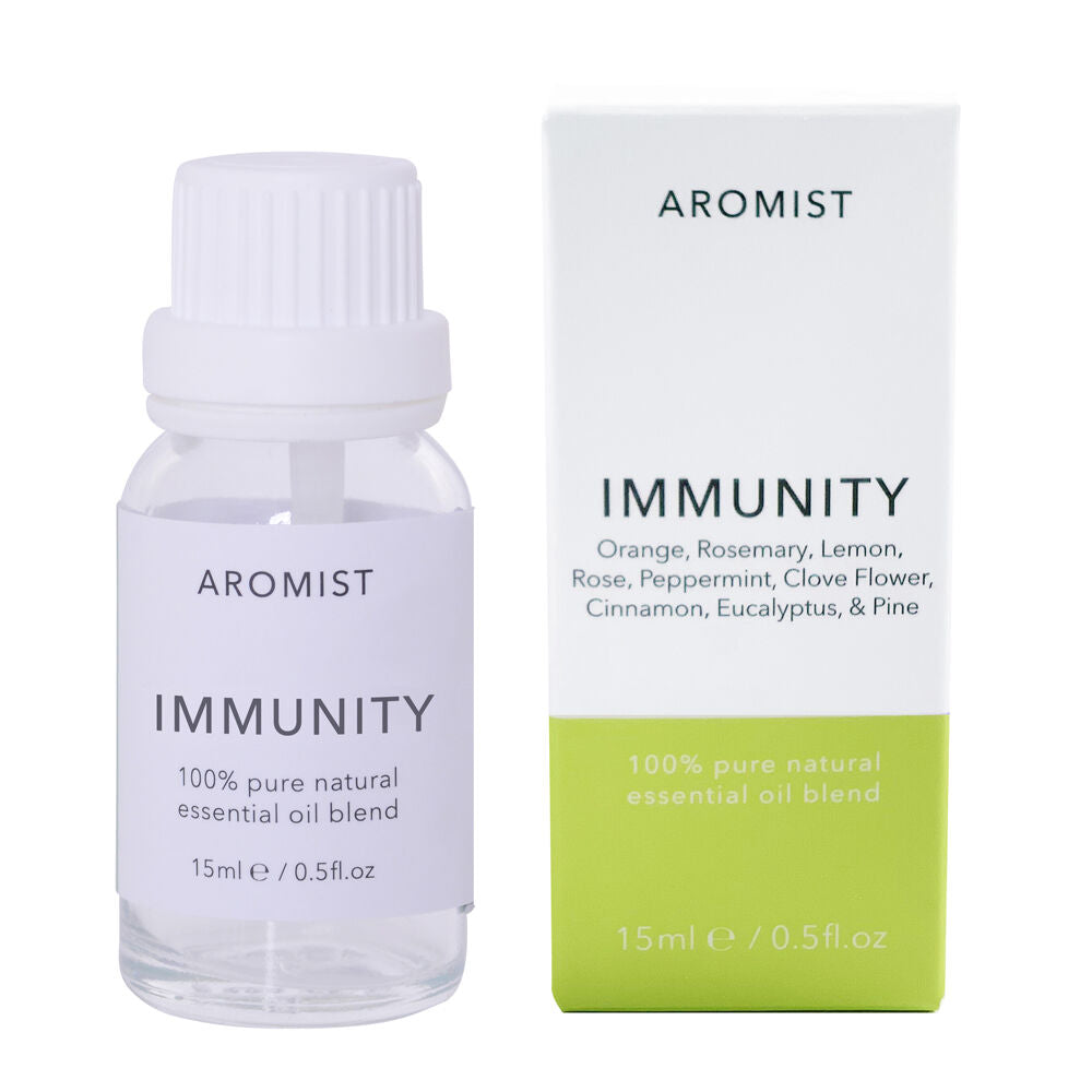 Aromist Immunity Essential Oil Blend - Orange, Rosemary, Lemon, Rose, Peppermint, Clove Flower, Cinnamon, Eucalyptus & Pine. A stimulating blend to help boost your strength and give you that little extra step to fight off anything that leaves you feeling less than you.Use an essential oil burner or diffuser for aromatherapy or mix with carrier oil to create a variety of treatments for skin, hair, bath and body.