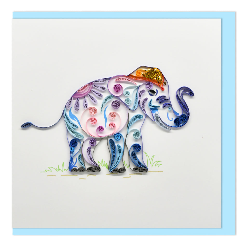 Handmade Paper Quilled Greeting Card Colourful Elephant