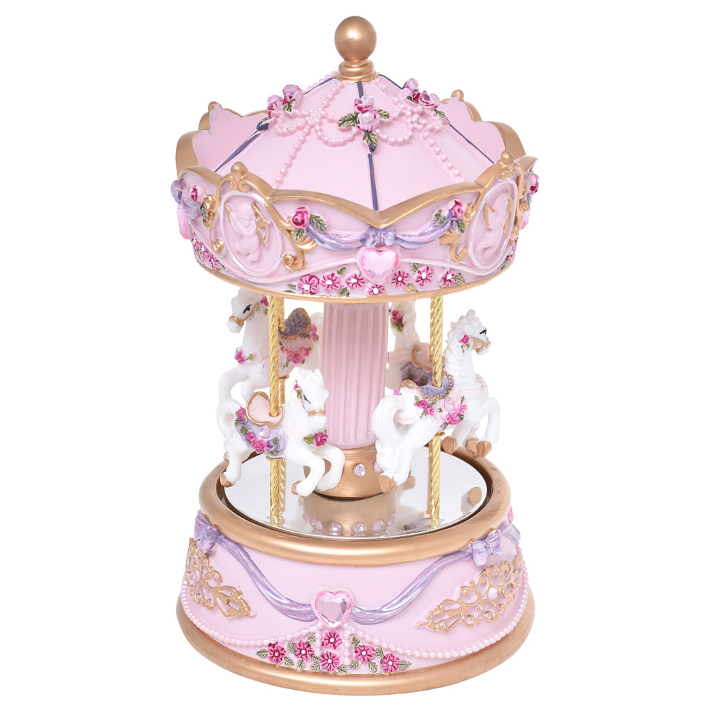 1 x Gibson Gifts Classic Mirror Musical Carousel Small 17x9cm - Pink
