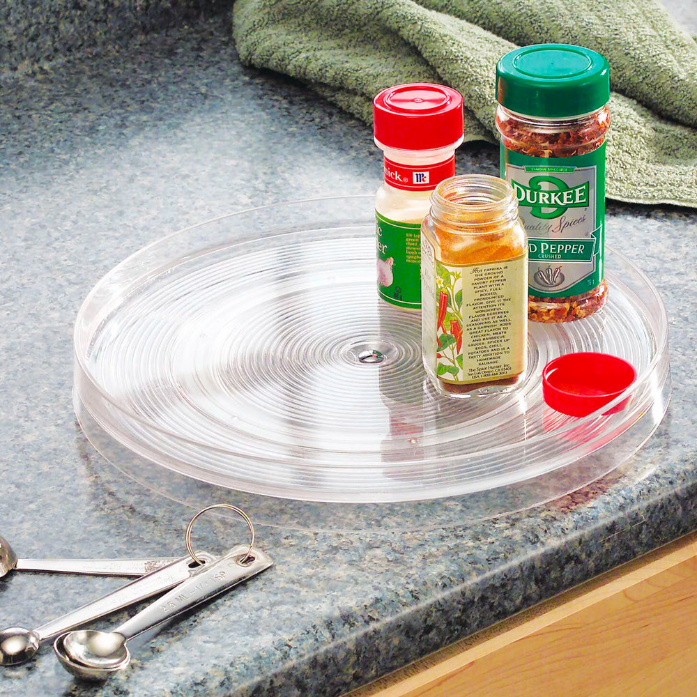 The iDesign Linus Turntable will help you organize and locate your most used kitchen items like condiments, spices and napkins. The spinning motion of this useful organizer allows you to access those hard to reach items in your pantry. Place the organizer on your kitchen table for dinner time, or in your cabinet to reach your favorite foods. The clear plastic design is easy to clean and lasts for years of use. The iDesign Linus Turntable measures 30 dia x 4.5 cm, the perfect size for your kitchen.