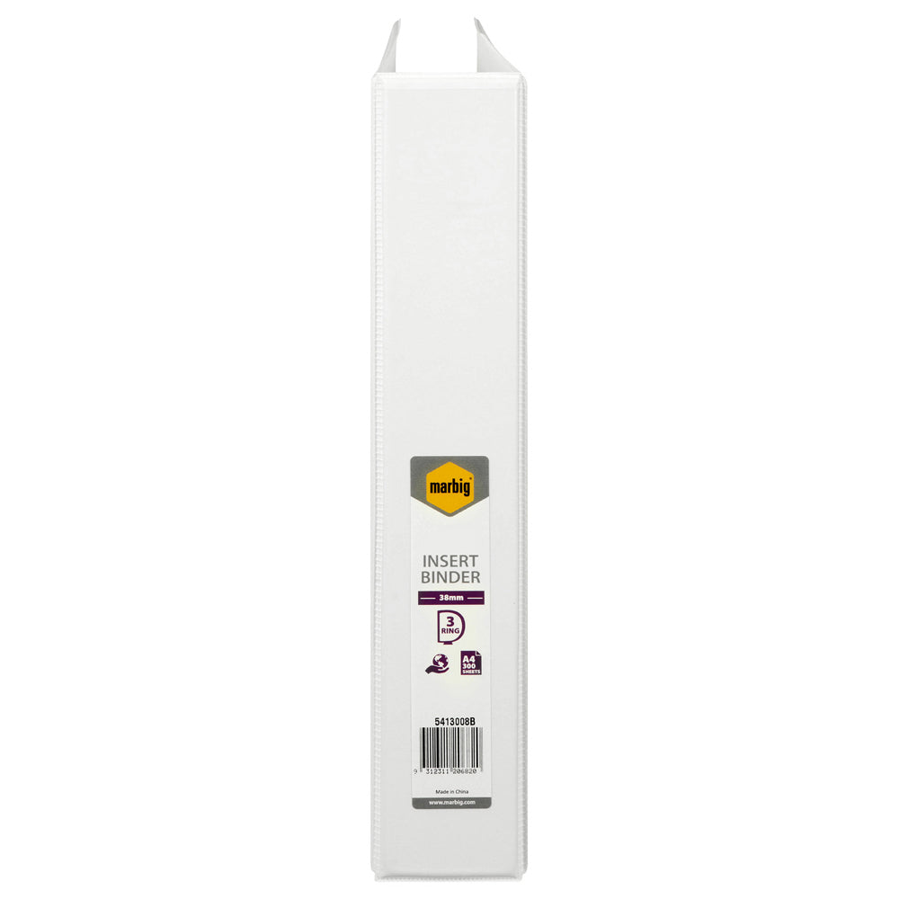 Marbig Clearview 3 D-Ring Insert Binder A4 File Organiser 38mm - White