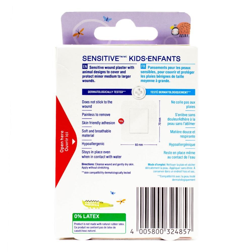 Elastoplast Sensitive Kids XL Wound Plaster with animal print design has been created with an innovative silicone adhesive technology to help ease the pain of removal and minimise disruption of the skin barrier, while ensuring reliable adhesion during wear. During wear, the soft and gentle silicone adhesive creates a bond between the plaster and the uneven surface of the skin and when removed, leaves the skin without residues. As a result, the plaster sticks securely to the skin, even after being repositioned. These sensitive plasters are the ideal solution for children with sensitive skin who require extra-gentle and soft wound treatment. They’re also an excellent choice when frequent plaster changes are necessary. Sensitive Kids is available in two sizes for the protection and covering of minor small to medium wounds.