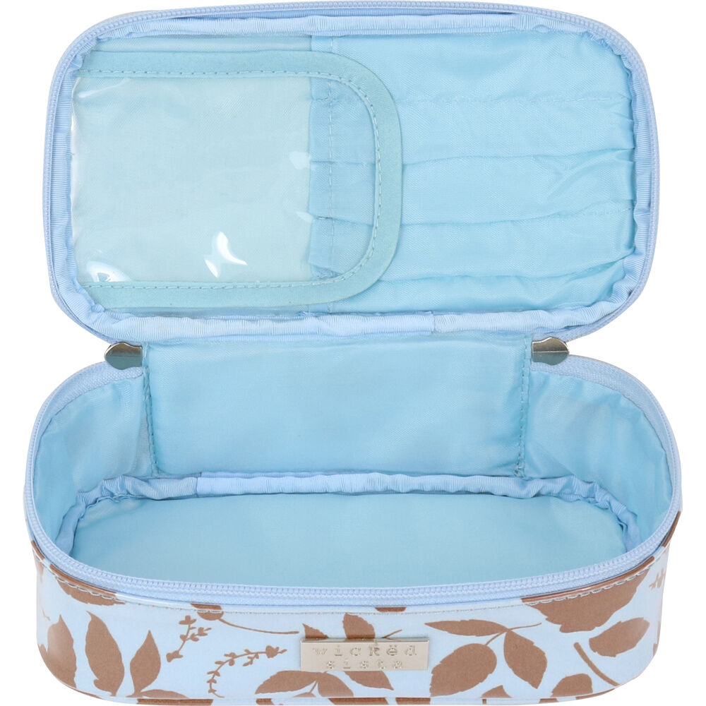 This cosmetic beauty case has a spot for everything. With two separate compartments and two zipper pockets, your beauty products will be easy to find.