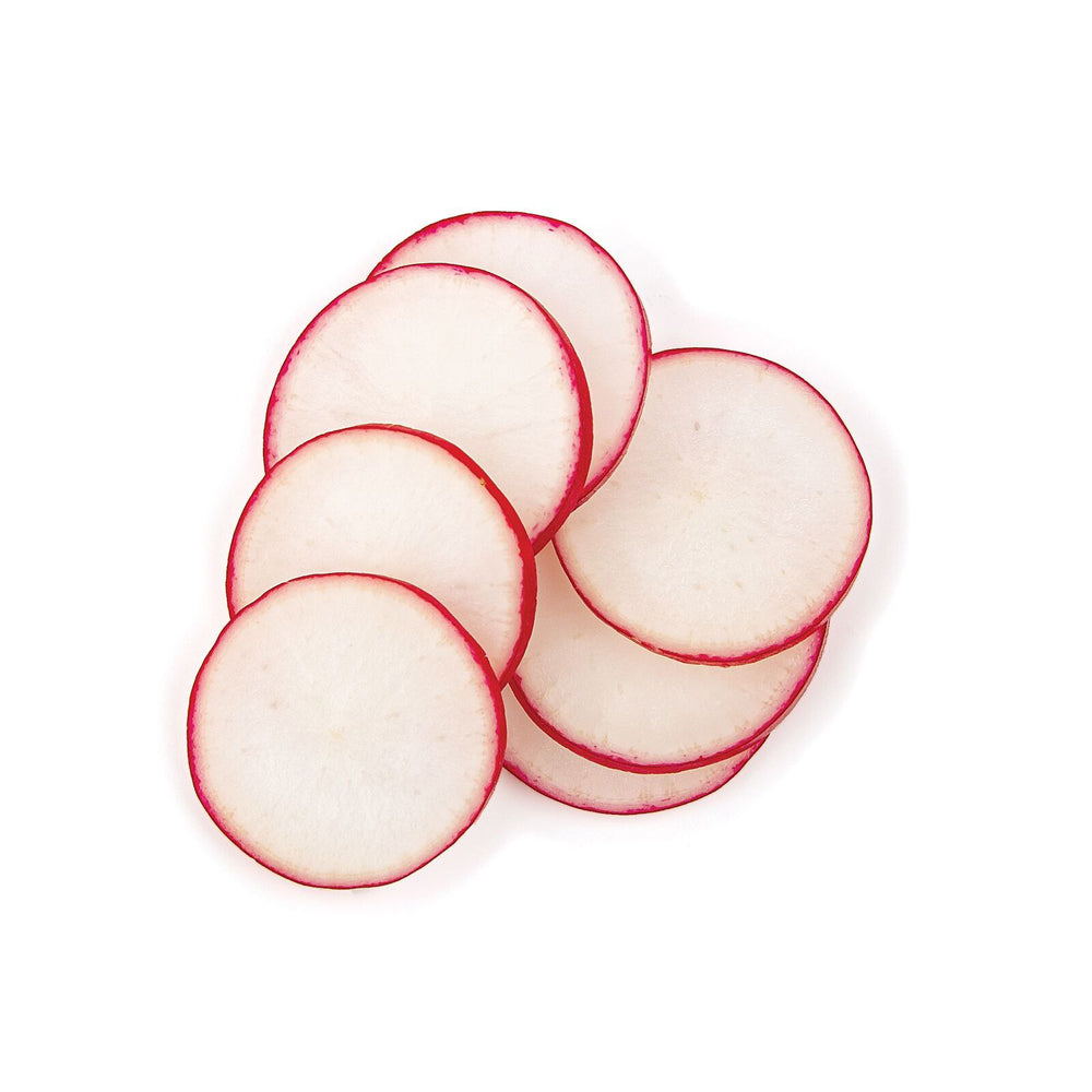 Slice perfectly even slices of garlic, radishes, carrots, cucumbers, mushrooms, brussel sprouts and more…