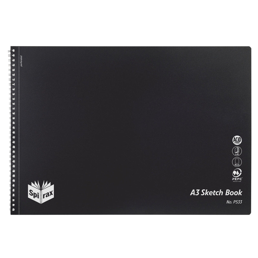 10pc Spirax P533 A3 Sketch Book Twin Wire 40-Pages Black