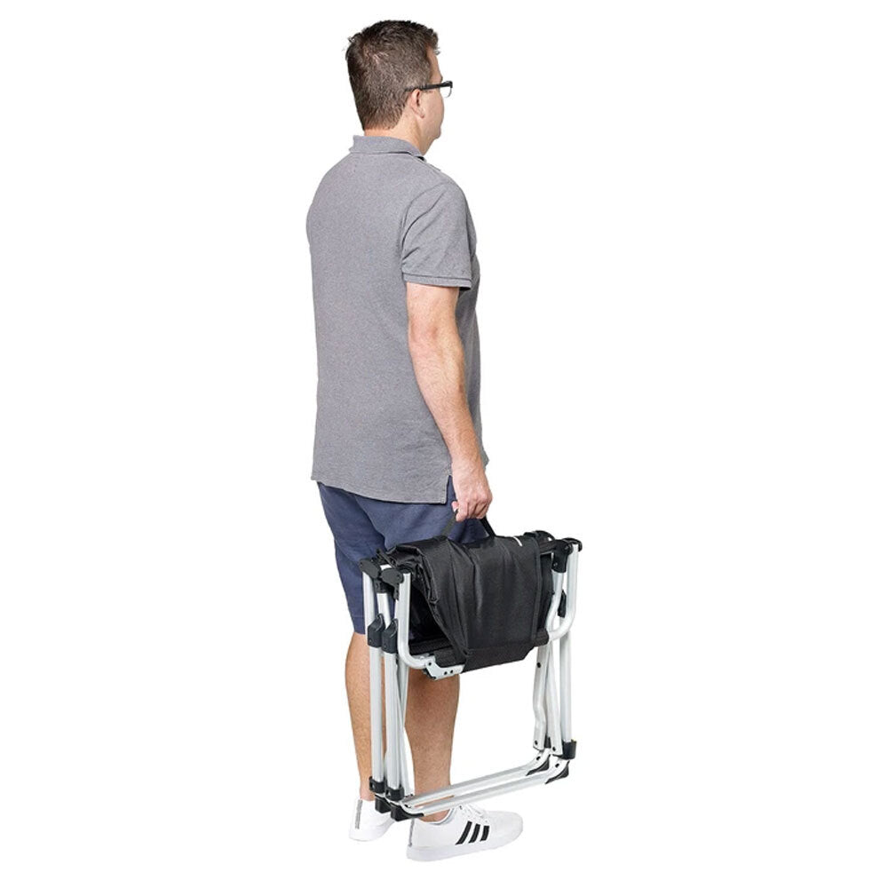 A popular campsite and 4WD touring chair has just been made better. Introducing Caribee's Aluminium Director's style chair with "Safe Lock" frame protection, super compact folding dimensions, lightweight construction (3.7kg) and 600D padded diamond embossed seating surface.