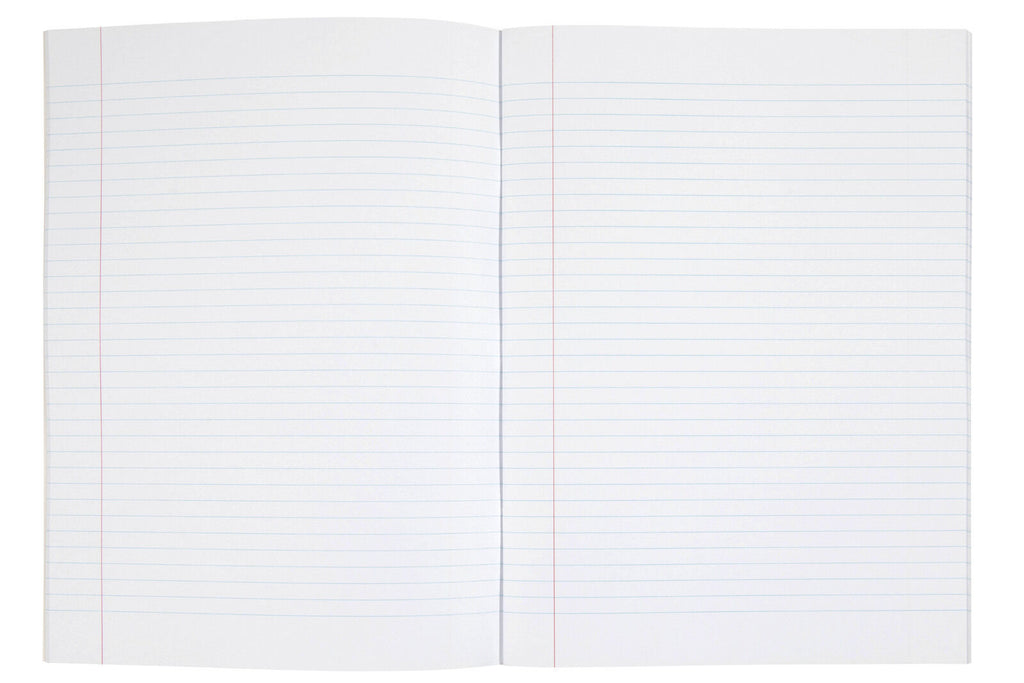 - 90 GSM paper with 8mm ruling in a staple-bound format.