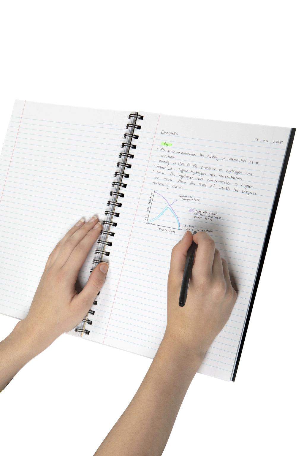Spirax hard covered notebooks are spiral bound with a solid hard cover that wont dog ear or distort.