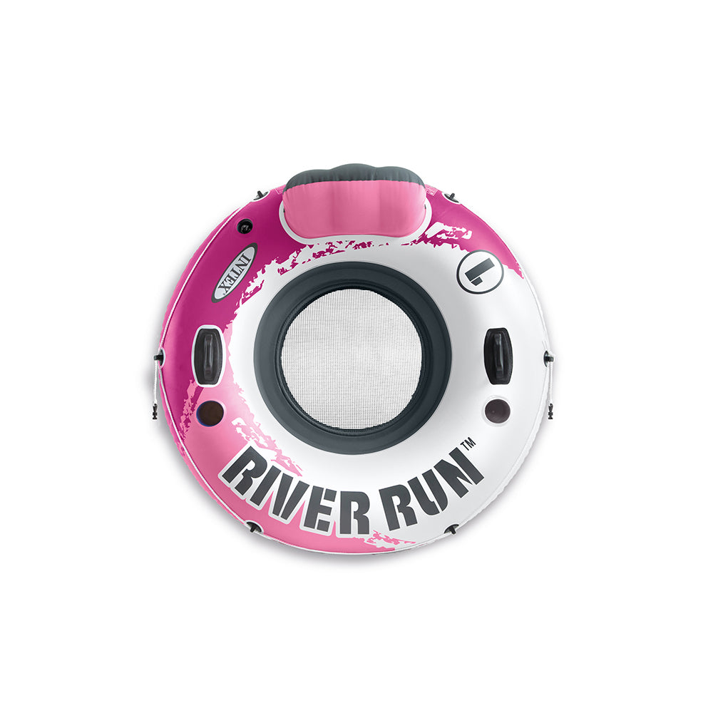 The Intex Pink River Run inflatable tube is designed to fit an adult and it's perfect for tubing down the river, in the lake, or in the pool. The River Run™ tube is designed for high-performance fun. The bottom of the tube has a mesh layer where the water keeps you cool in the sun. The cup holders and backrest are added comforts on the water. The 18-gauge (0.46mm) vinyl material is durable and cool to the touch.
