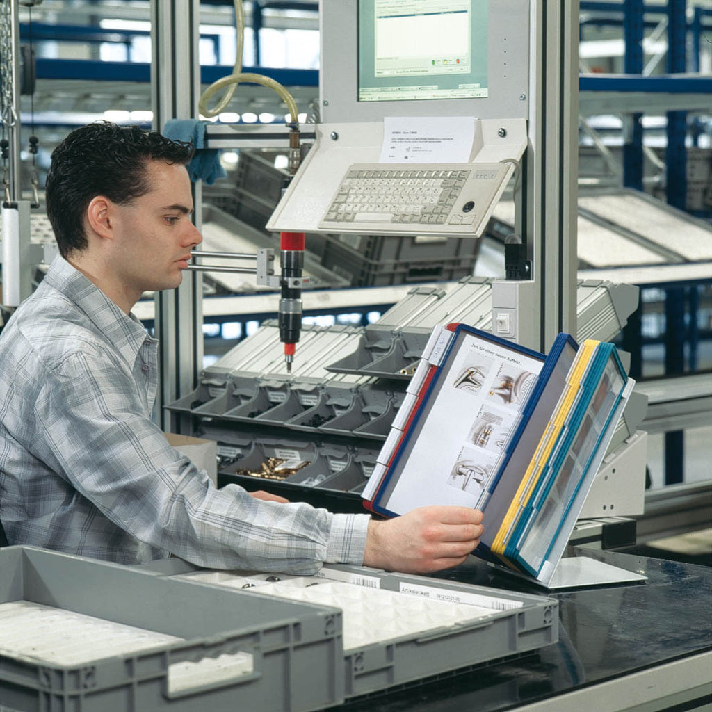 Complete set for use on tables. Made of powder-coated sheet steel, with SHERPA¬ display panels in A4 format. With index tabs and blank insert labels for organisation. Ideal for long-term use.